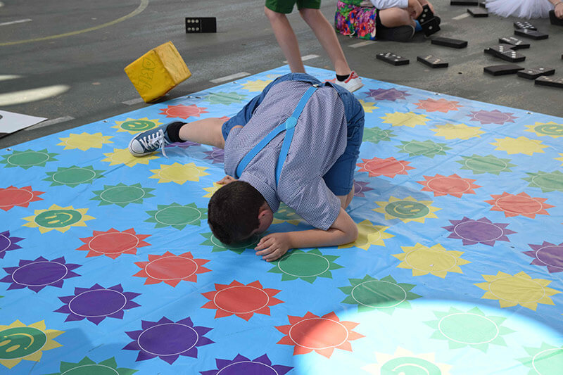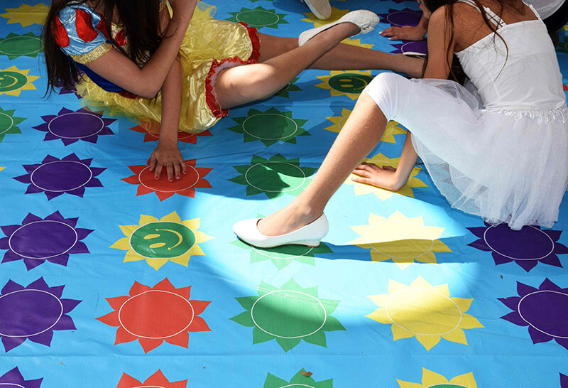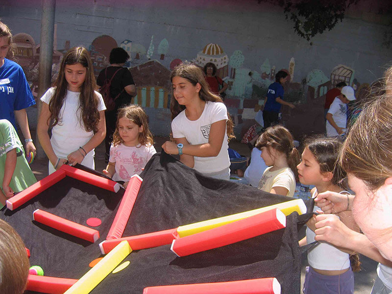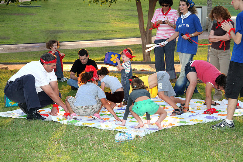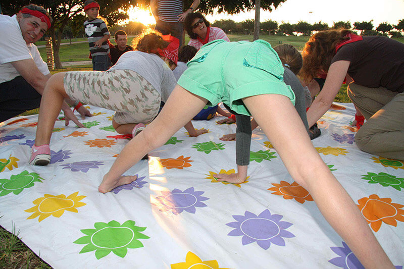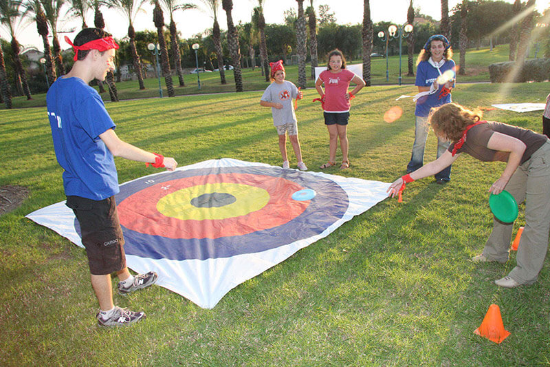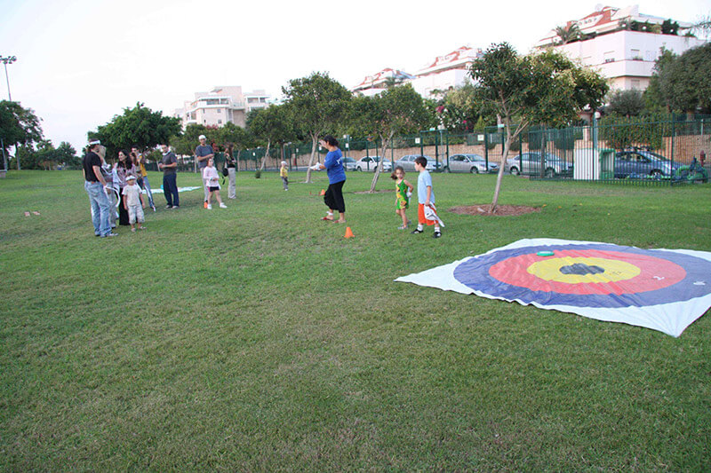קליעה למטרה לענקים, ריצה בשקים, דוקים לענקים, סולמות ונחשים ענק, פלונטר קבוצתי ענק, ג’נגה ענק ומבוך כדורים.