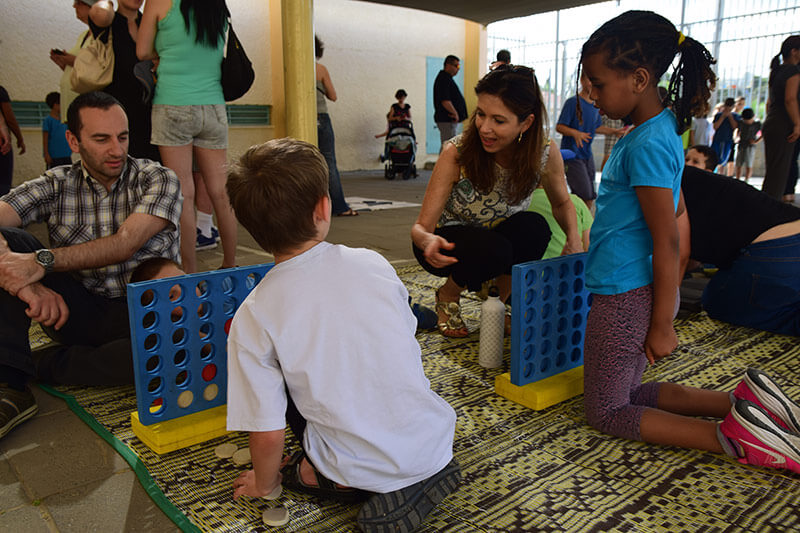 משחק לחיצות ידיים להיכרות ושבירת קרח, משחק הפכים קבוצתי, חישוקים ונהנים, משחקי כדור תחרותיים ומשחקי אתגר נוספים לכל המשפחה.